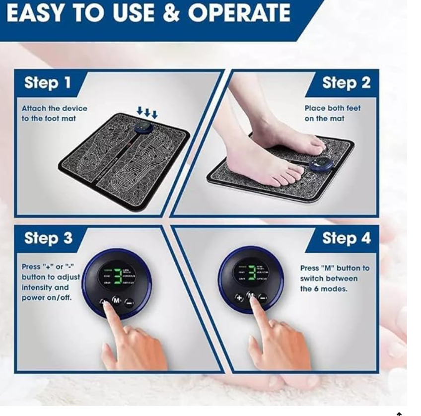 Simply place your feet on the pad, adjust the intensity, and relax.
